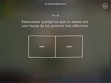 À travers une expérience immersive et ludique, LOOV répond aux interrogations des adolescents de 12 à 14 ans sur le développement de leur vie sexuelle, les renseigne sur le consentement et les prémices d'une relation amoureuse saine et aborde l'amour et la sexualité dans leurs dimensions biologiques, affectives, psychologiques et relationnelles. Un parcours dynamique et interactif pour faire l'apprentissage d'une sexualité positive et épanouie.